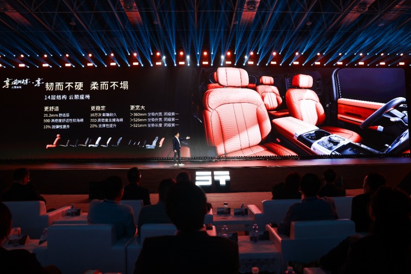 G700車(chē)內(nèi)采用云憩座椅精選Nappa真皮,搭載萊斯康18揚(yáng)聲器音響,經(jīng)過(guò)專(zhuān)業(yè)聲學(xué)調(diào)校,確保每個(gè)座位都是黃金VIP聽(tīng)聲位,讓越野途中每一段旅程都成為享受。